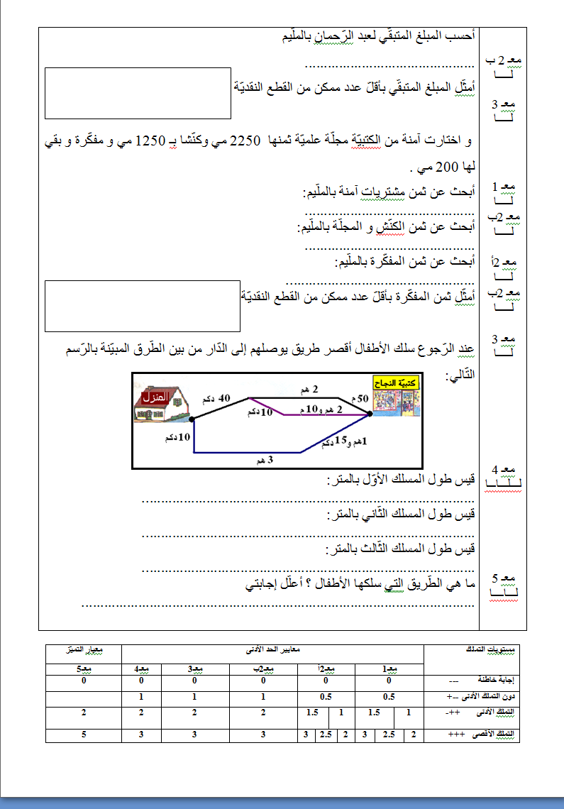 مادة الرياضيات امتحانات السنة الثالثة ابتدائي تونس الثلاثي الثالث Pdf