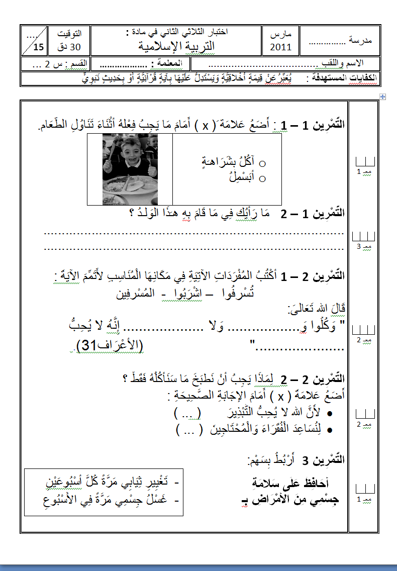 سنة ثالثة ابتدائي امتحانات السنة الثالثة ابتدائي تونس الثلاثي الاول